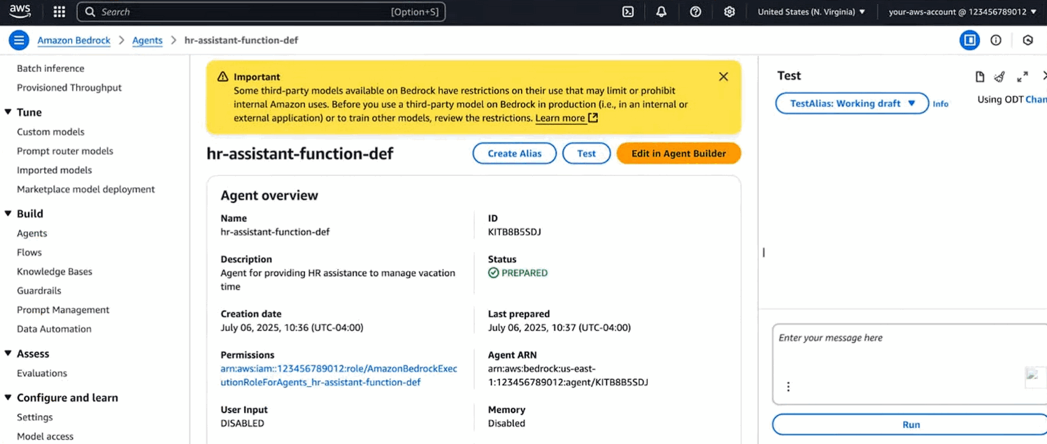 - Foundation model choice: support for multiple models including Amazon Nova and GPT-oss.