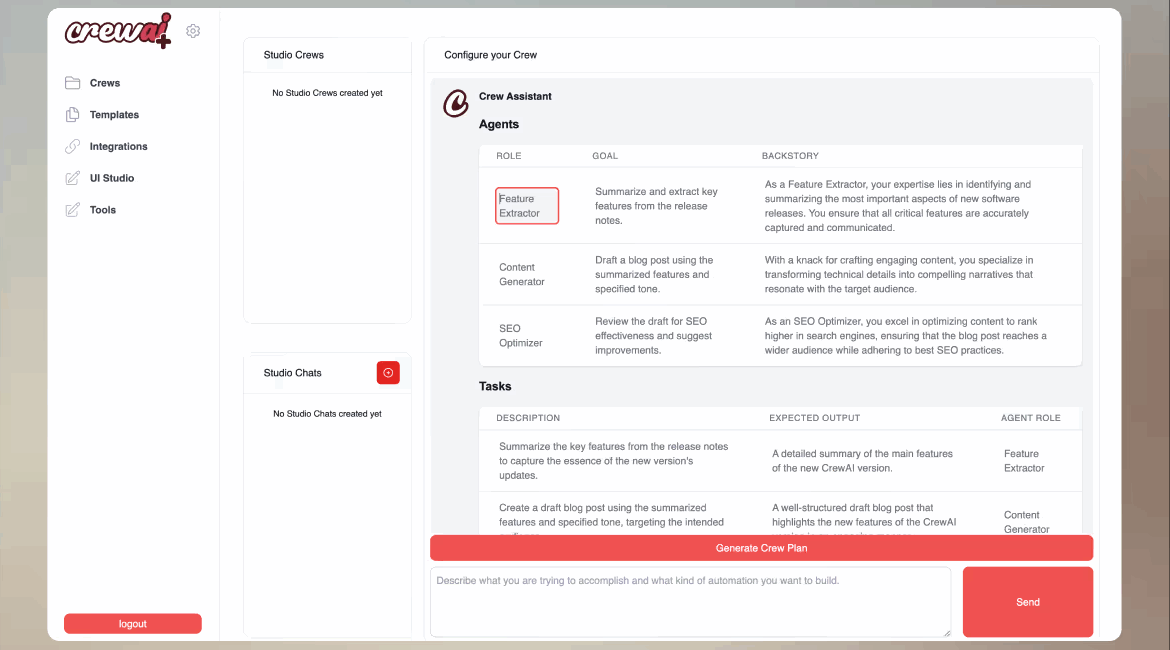 - Limited free plan with 50 executions/month and 1 live deployed crew