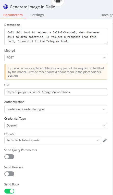 Step 5. HTTP Request tool to generate Dall-e 3 images