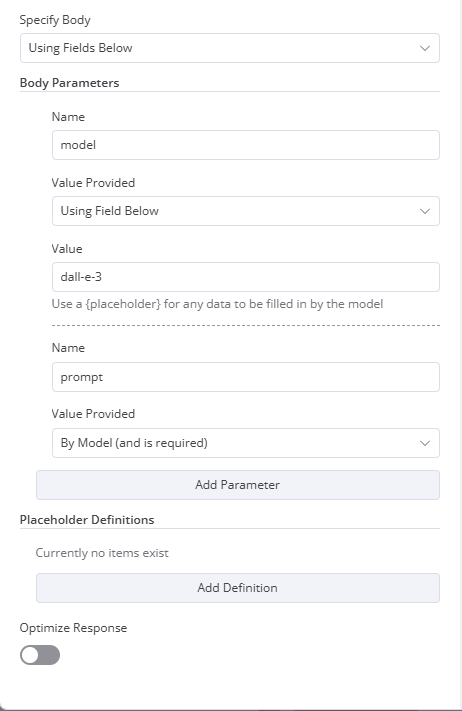 dall-e-3value - Add prompt parameter and select By model (and it is required).