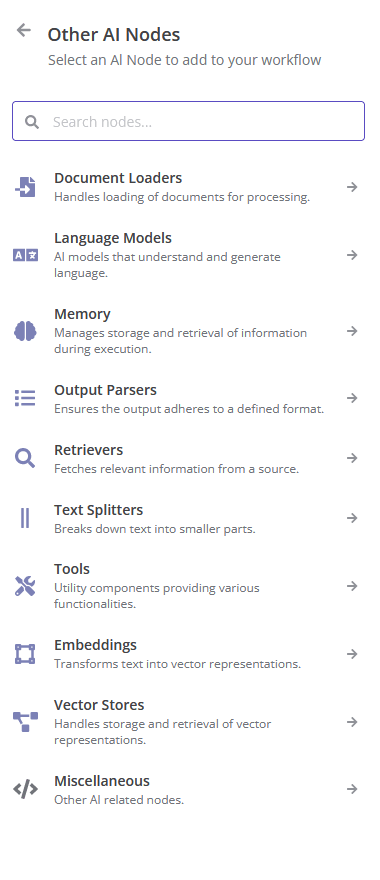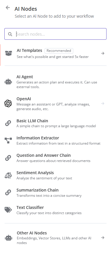 n8n AI nodes panel