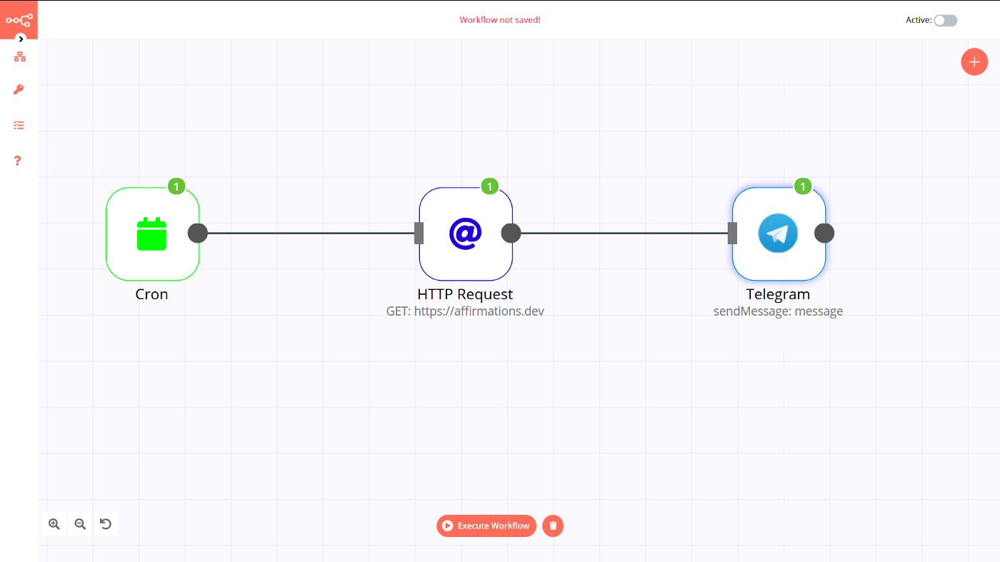 Today we’ll be adding to that list of workflows. We aren’t going through the easiest time at the moment with everything going on in the world and sometimes we need a little lift up. We’re going to create a workflow that sends positive affirmations to your telegram chat or group every day at a time you want.