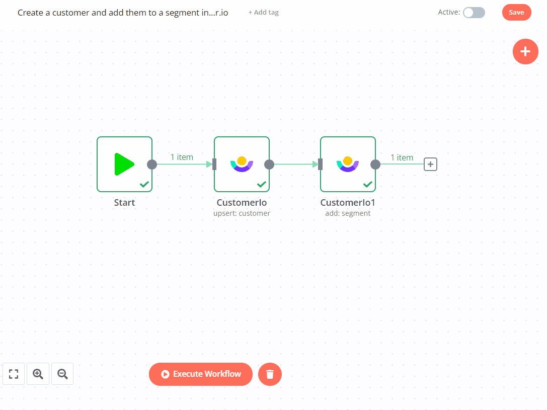 As an eCommerce website owner, you can create a bot with n8n to automate several communication tasks. For example, you may create a customer and add that customer to a segment in customer.io.