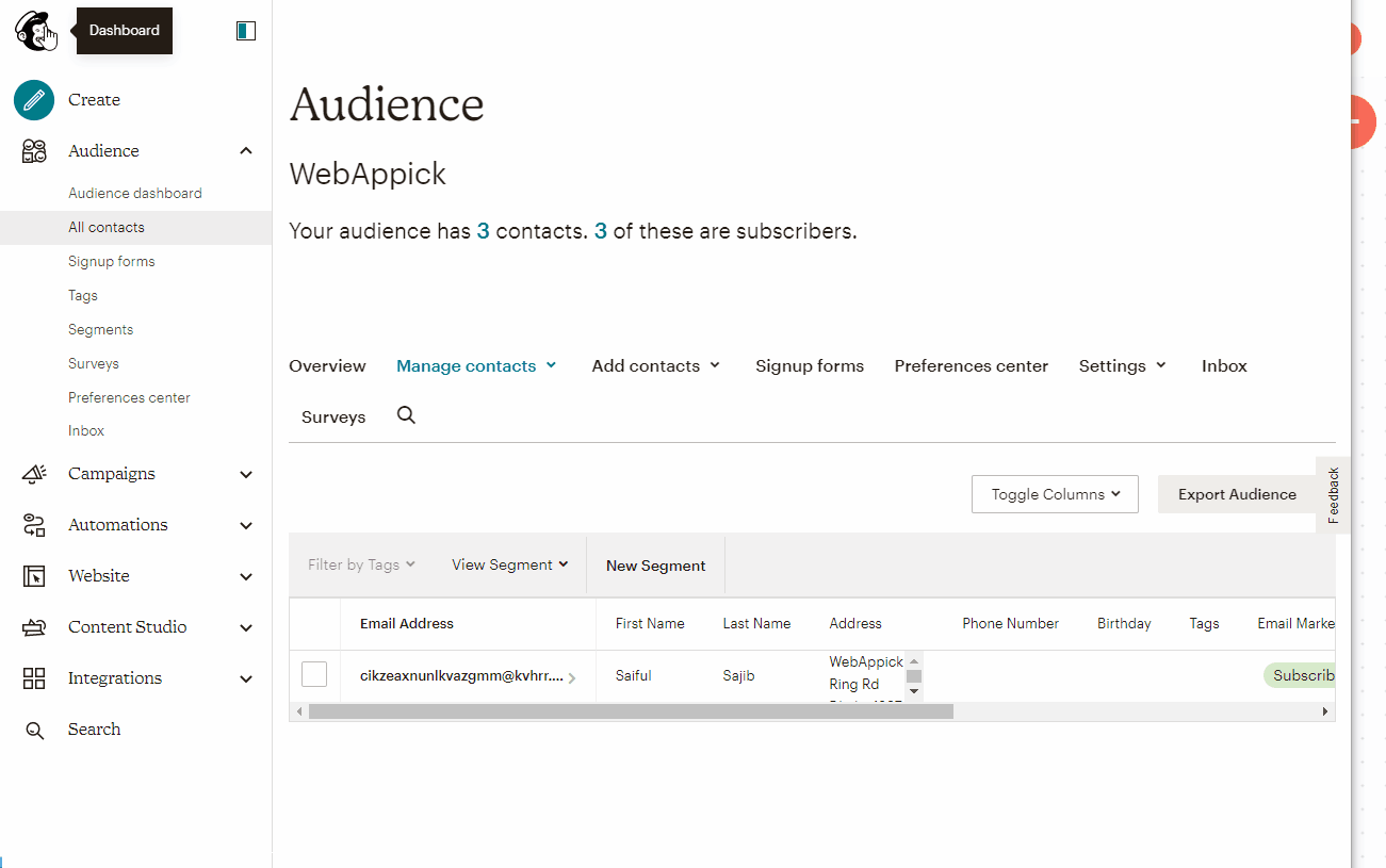 - Login to your Mailchimp dashboard