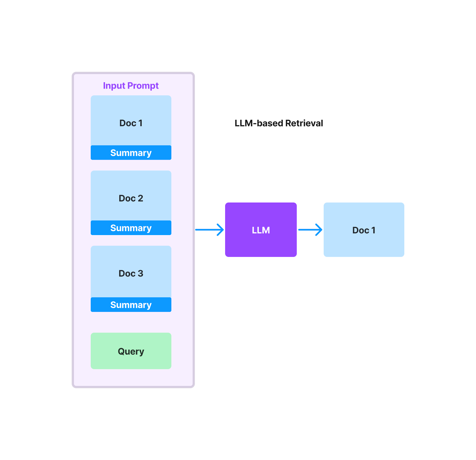 Just as when evaluating RAG, you can use an LLM to rerank retrieved documents. LLM-powered retrieval can return more relevant documents than embedding-based retrieval, with the tradeoff being much higher latency and cost. At a high-level, this approach uses the LLM to decide which documents and chunks are relevant to the given query. The input prompt would consist of a set of candidate documents, and the LLM is tasked with selecting the relevant set of documents as well as scoring their relevance with an internal metric.