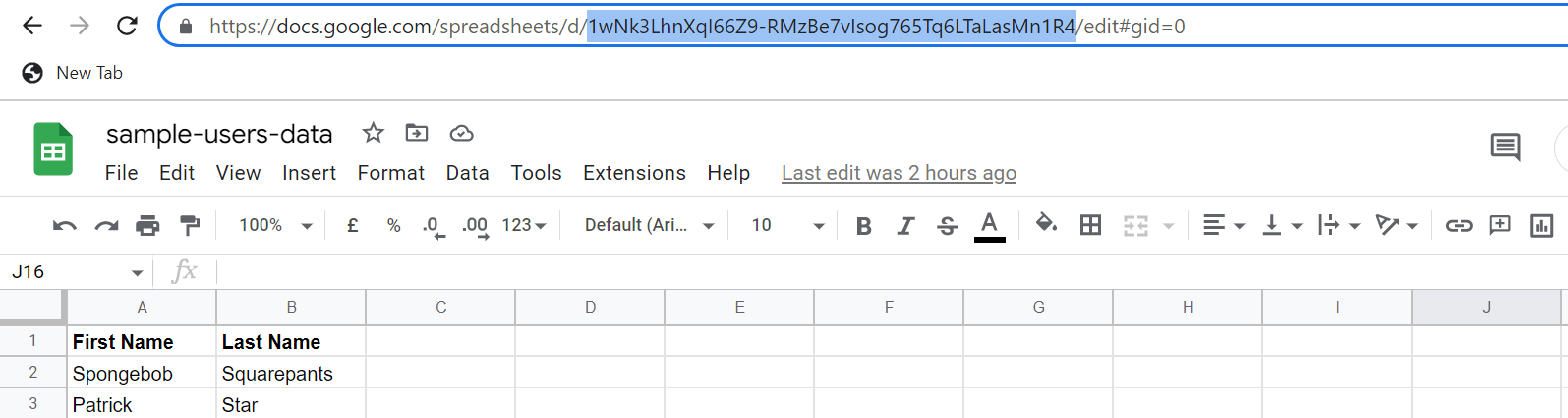 - Make a copy of the Google Spreadsheet data here. It’s a list of users with their first and last names.