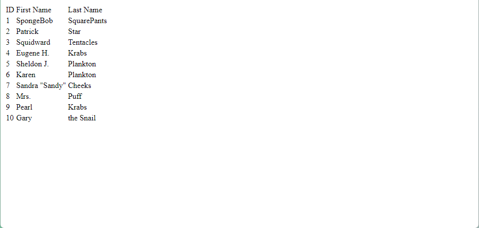 - Lastly, visit the URL provided by the webhook node in your browser (production URL if the workflow is active, test URL if the workflow is executed manually) to see your spreadsheet data displayed as an HTML table as shown in the image below.
