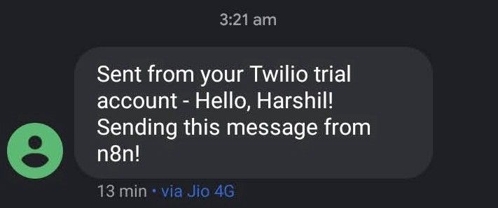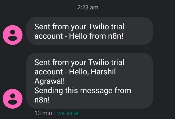 Congratulations, you have learned how to send an SMS with n8n!